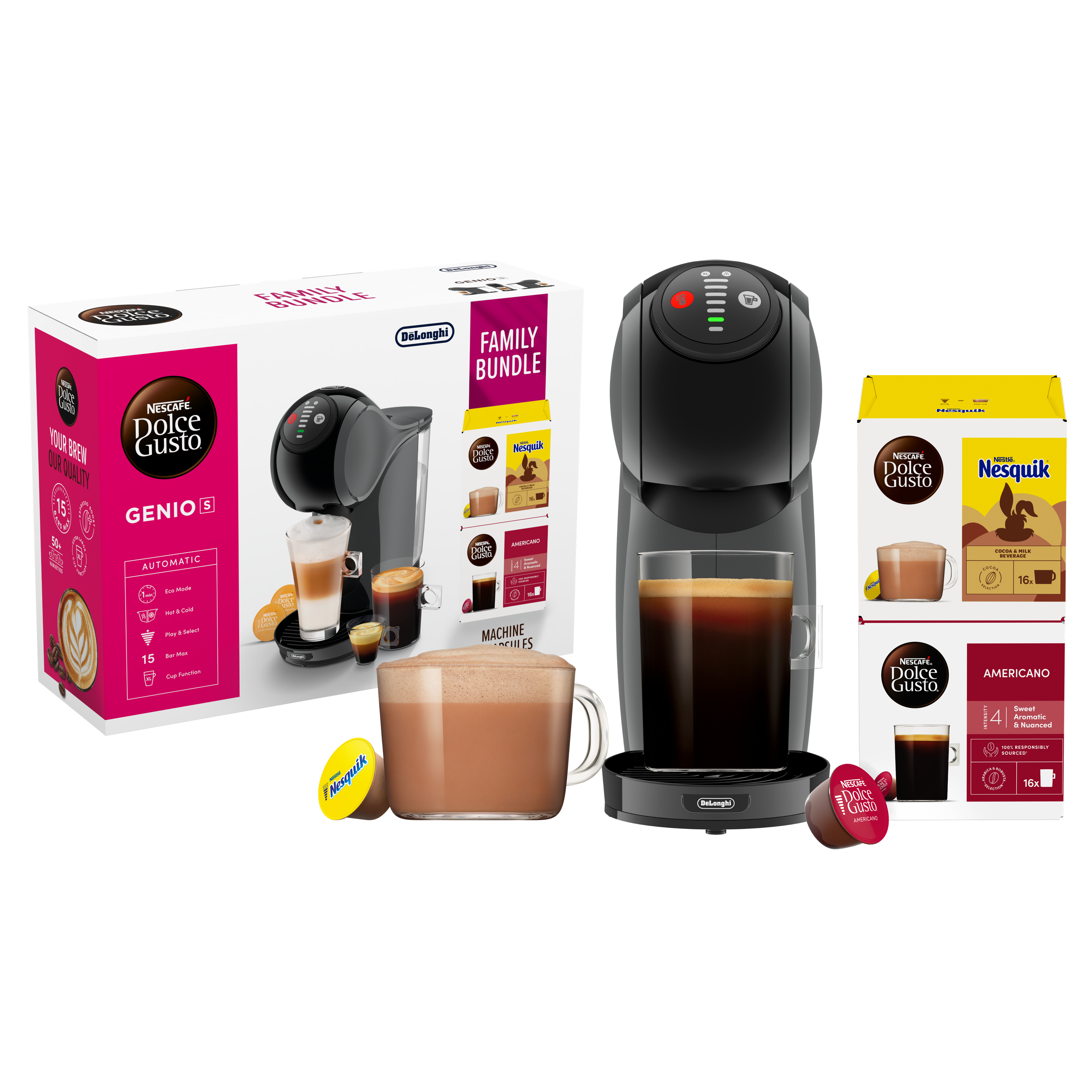 en NESCAFÉ Dolce Gusto Family Bundle for å bringe kaffebaropplevelsen hjem til deg.